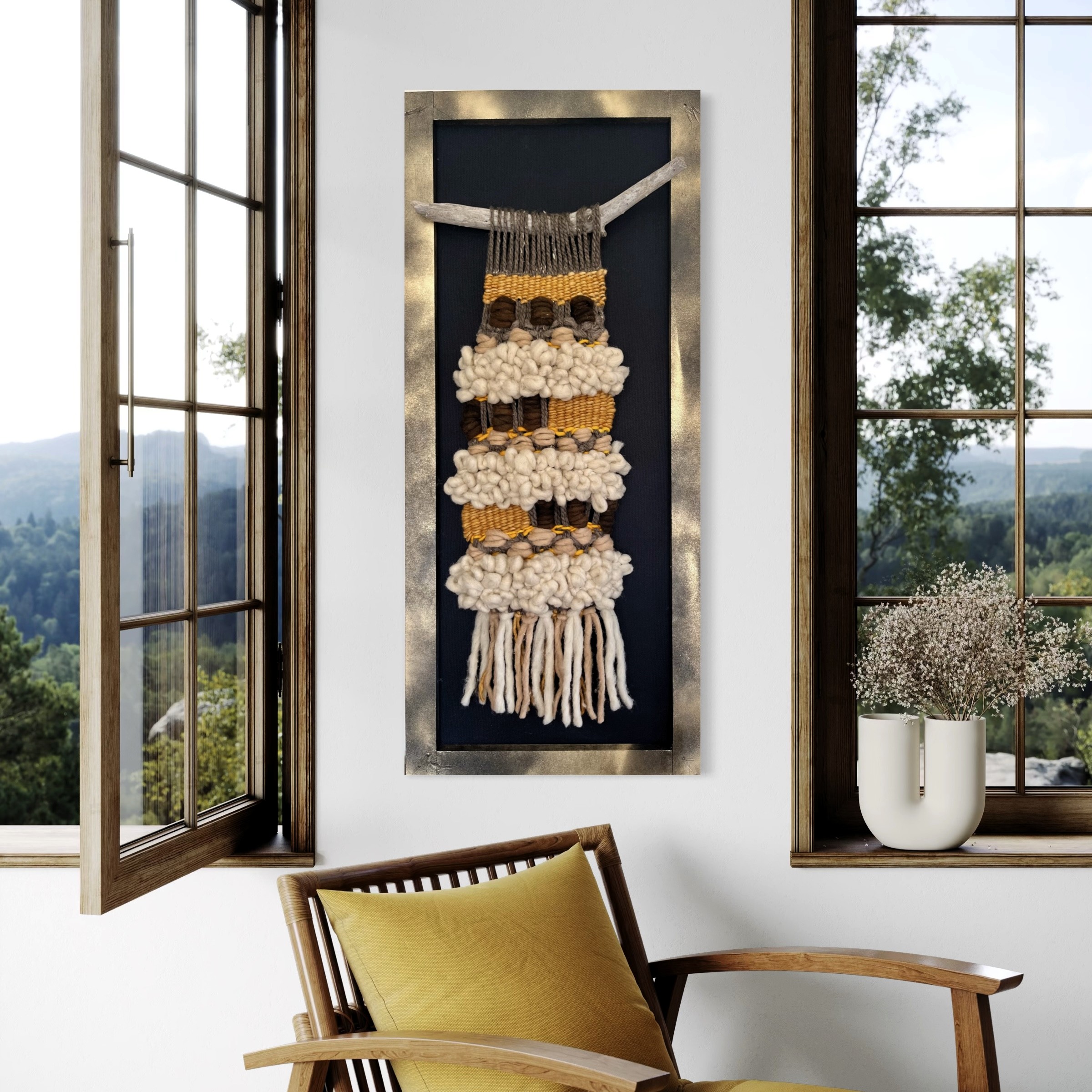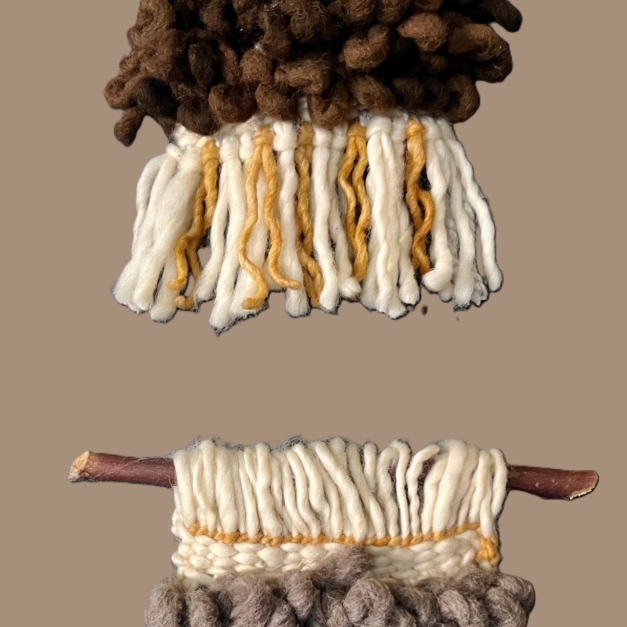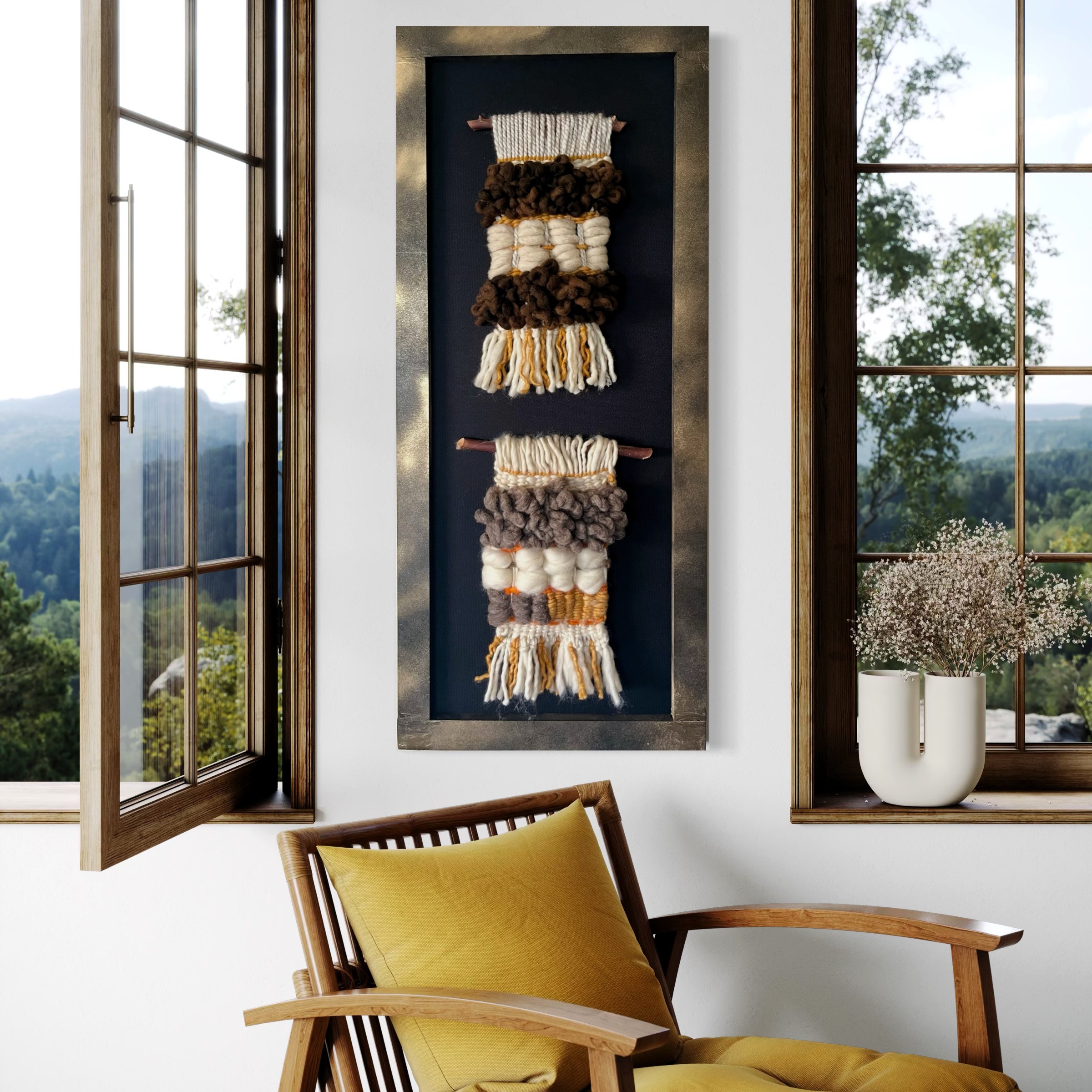 Murales tejidos a mano con lana de oveja y maderas naturales. Haz clic sobre cualquier imagen para ampliarla.
