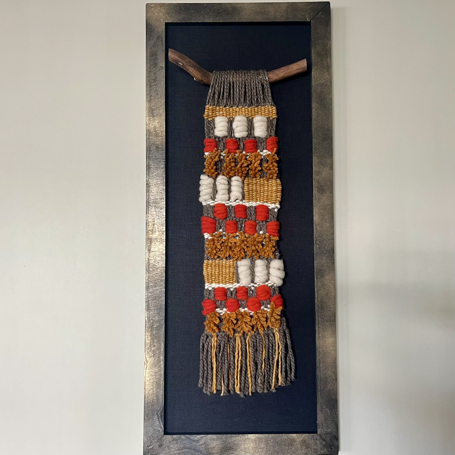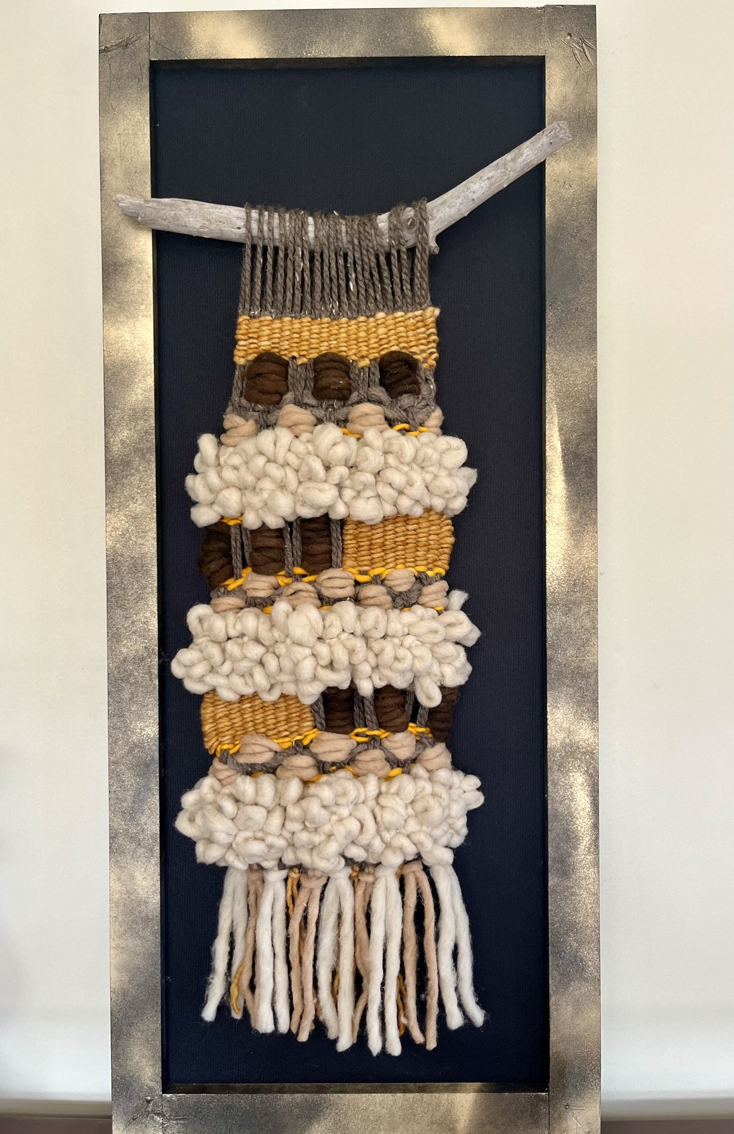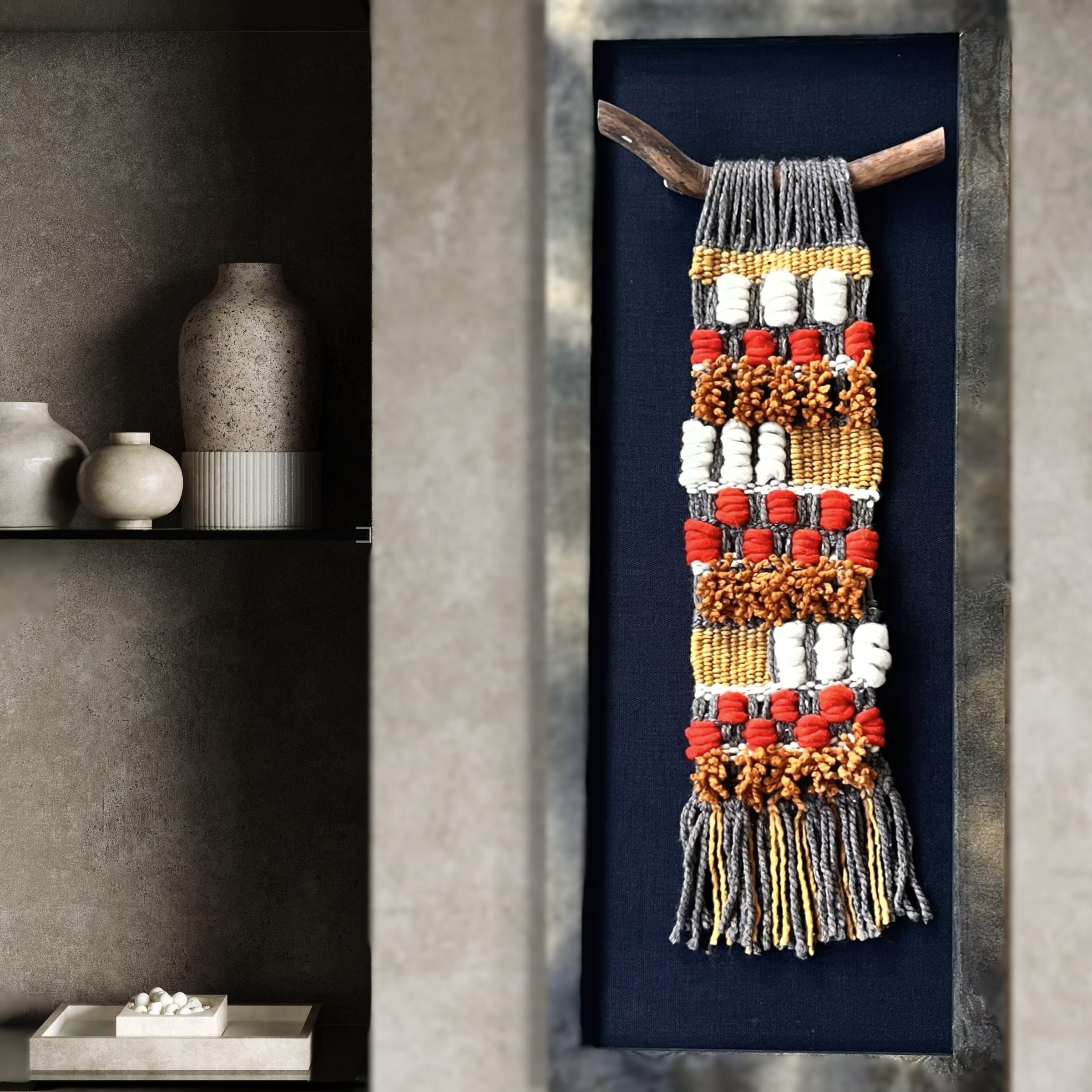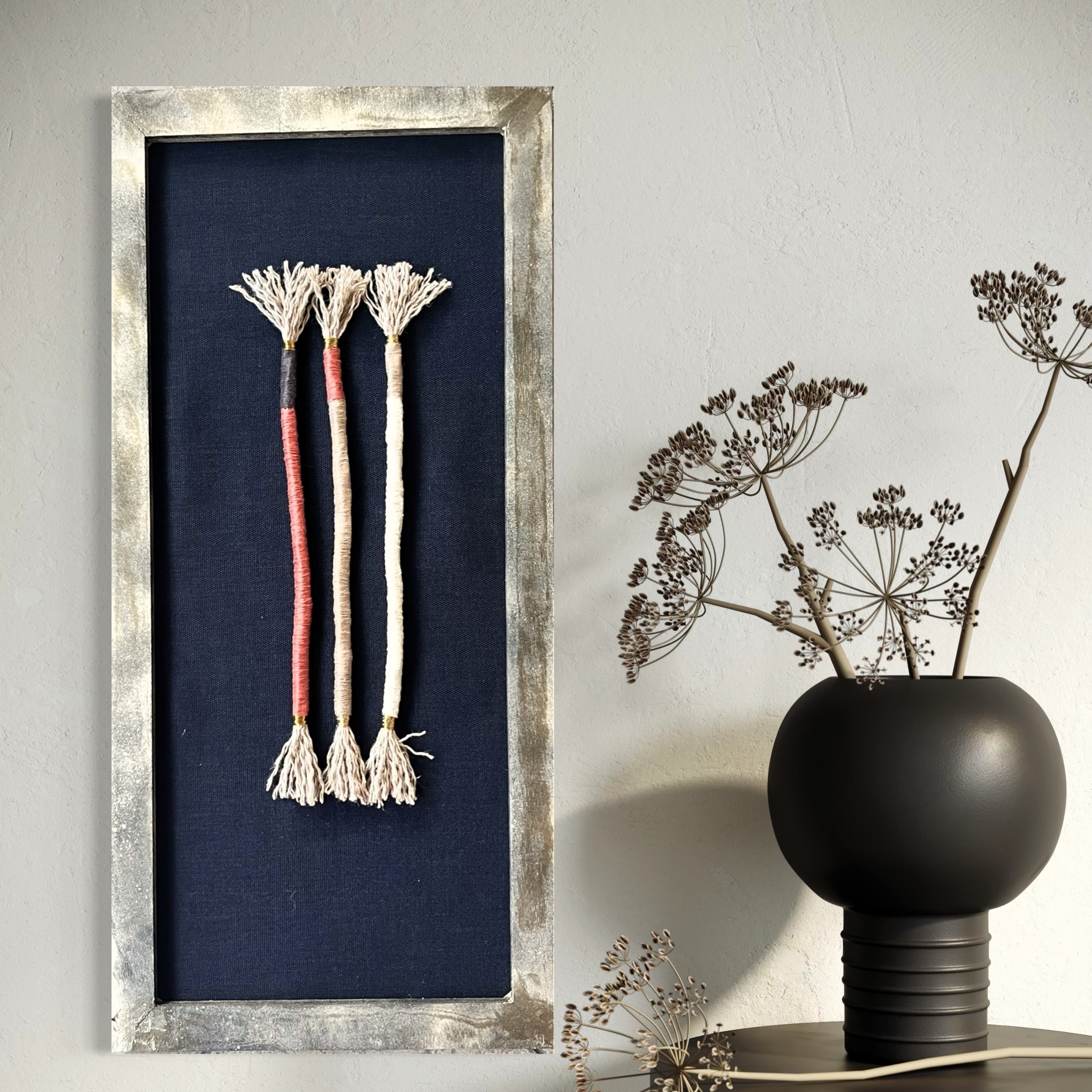 Murales tejidos a mano con lana de oveja y maderas naturales. Haz clic sobre cualquier imagen para ampliarla.